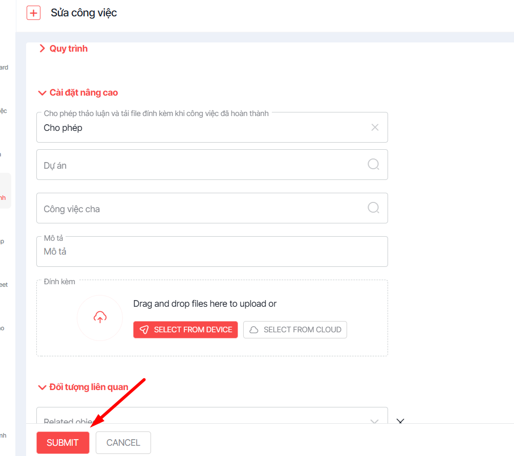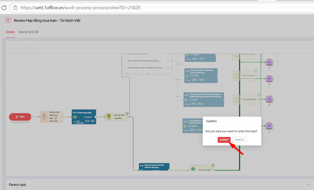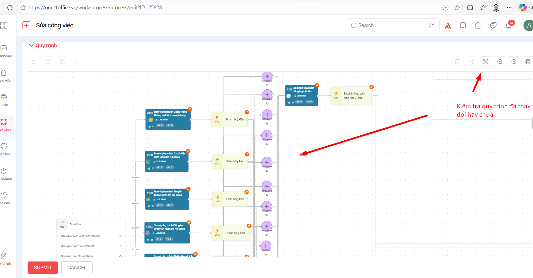 Bước 6: Chọn SUBMIT để áp dụng quy trình phiên bản mới