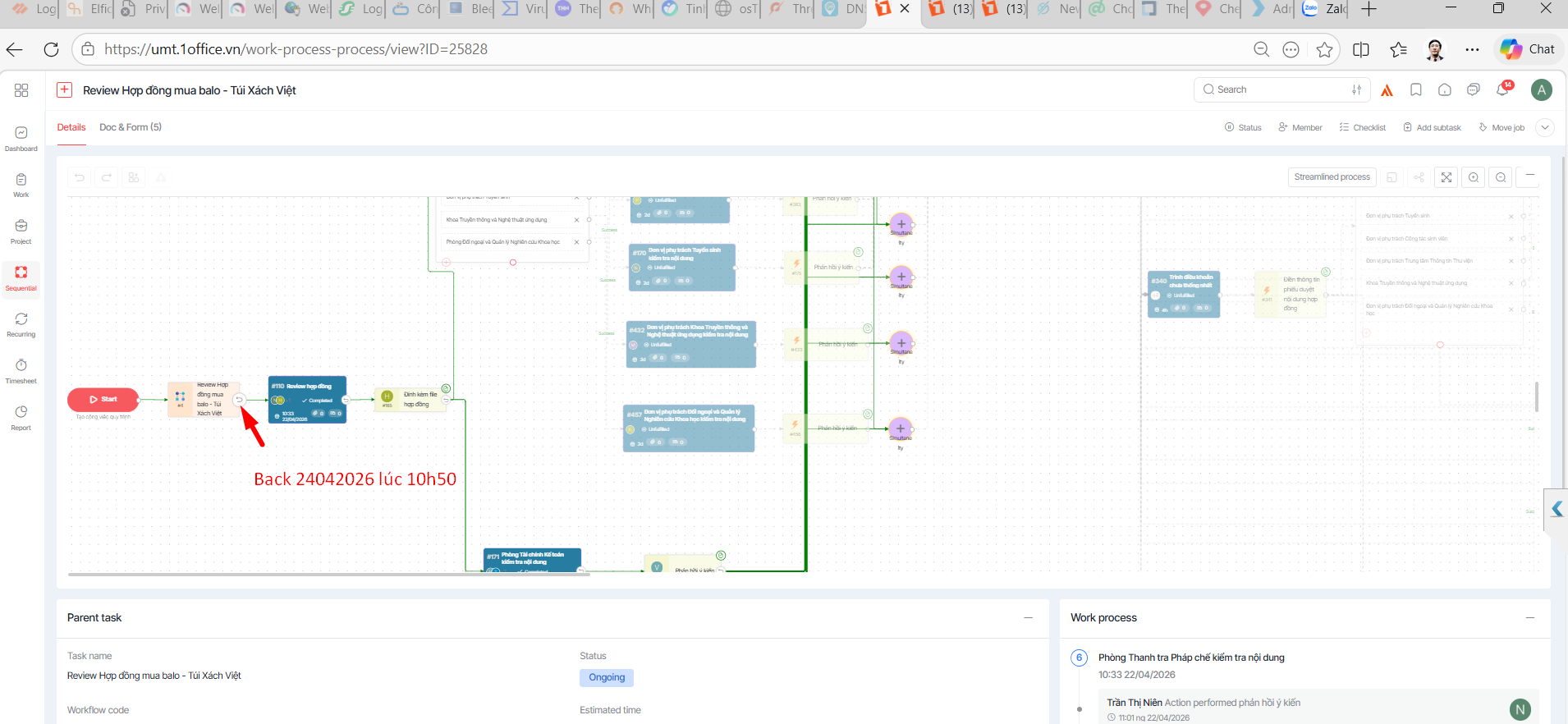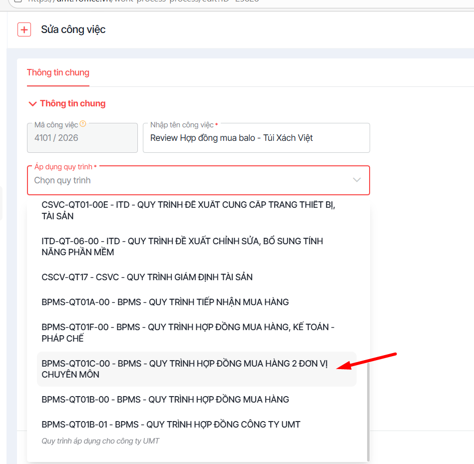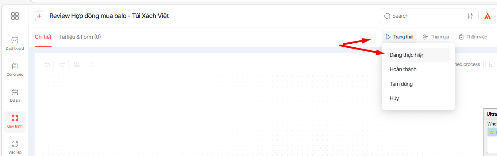 Bước 7: Chọn Trạng thái --> chọn Đang thực hiện để hoàn tất áp dụng quy trình mới.