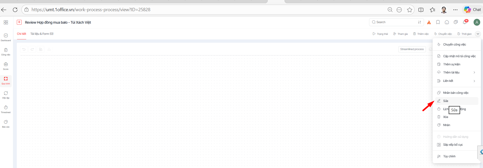 Bước 1: Đăng nhập quyền Admin vào quy trình cần rollback --> chọn biểu biểu tượng
