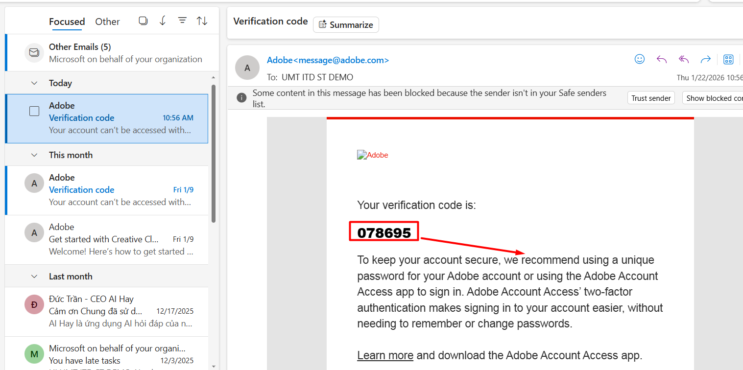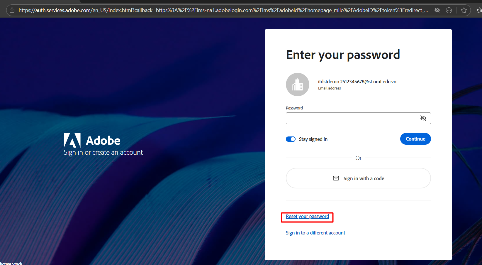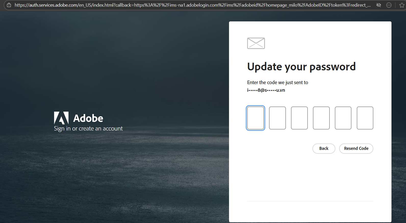 Bước 5: Nhập mã code sau đó hệ thống tự động link đến trang update your password.