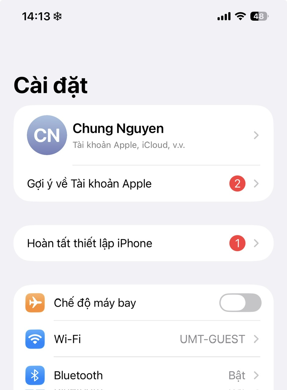 Bước 1: Chọn Cài đặt --> chọn Wi-Fi