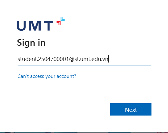 Bước 1: Sinh viên Đăng nhập vào hệ thống đào tạo trực tuyến bằng cách sử dụng trình duyệt web. Truy cập vào địa chỉ http://lms.umt.edu.vn/. Trong giao diện đăng nhập, đăng nhập bằng Username/Password (Email của sinh viên) đã được nhà trường cung cấp có dạng @st.umt.edu.vn