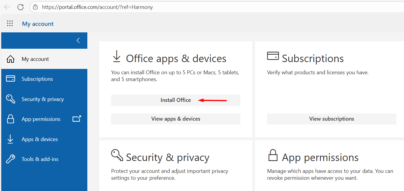 Bước 3: Chọn Install Office để tải phần mềm về thư mục Download