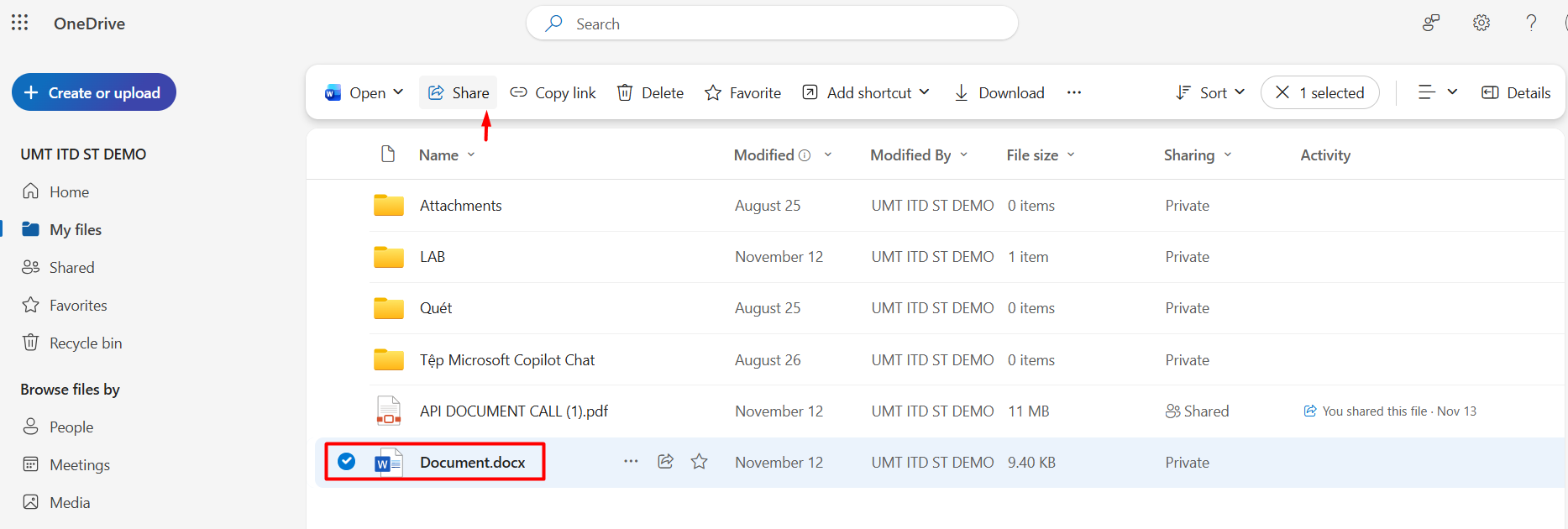 Bước 1: Để chia sẻ tập tin hay thư mục, chọn Share.