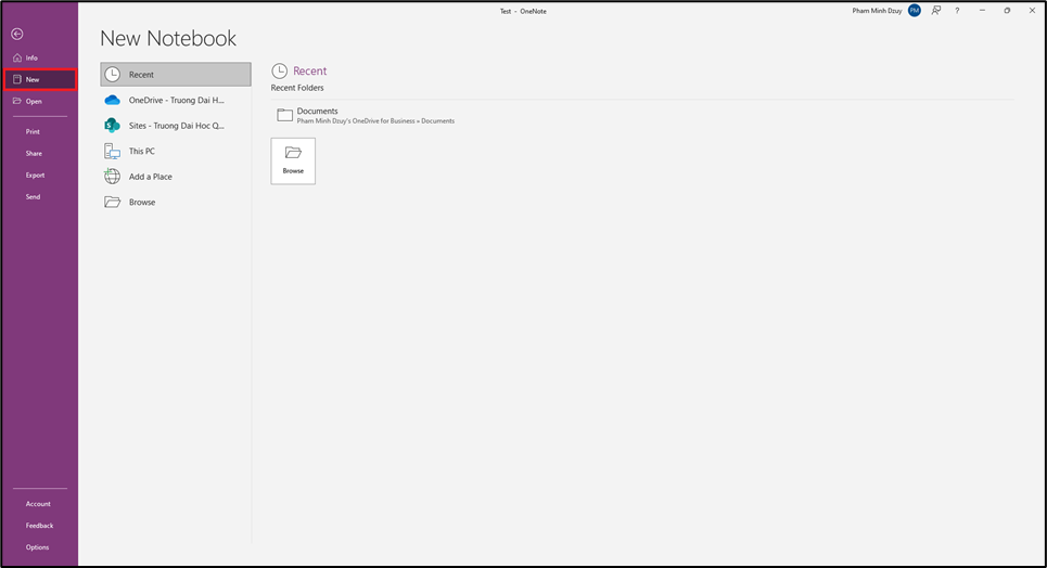 Bước 1: Mở OneNote --> chọn File --> New