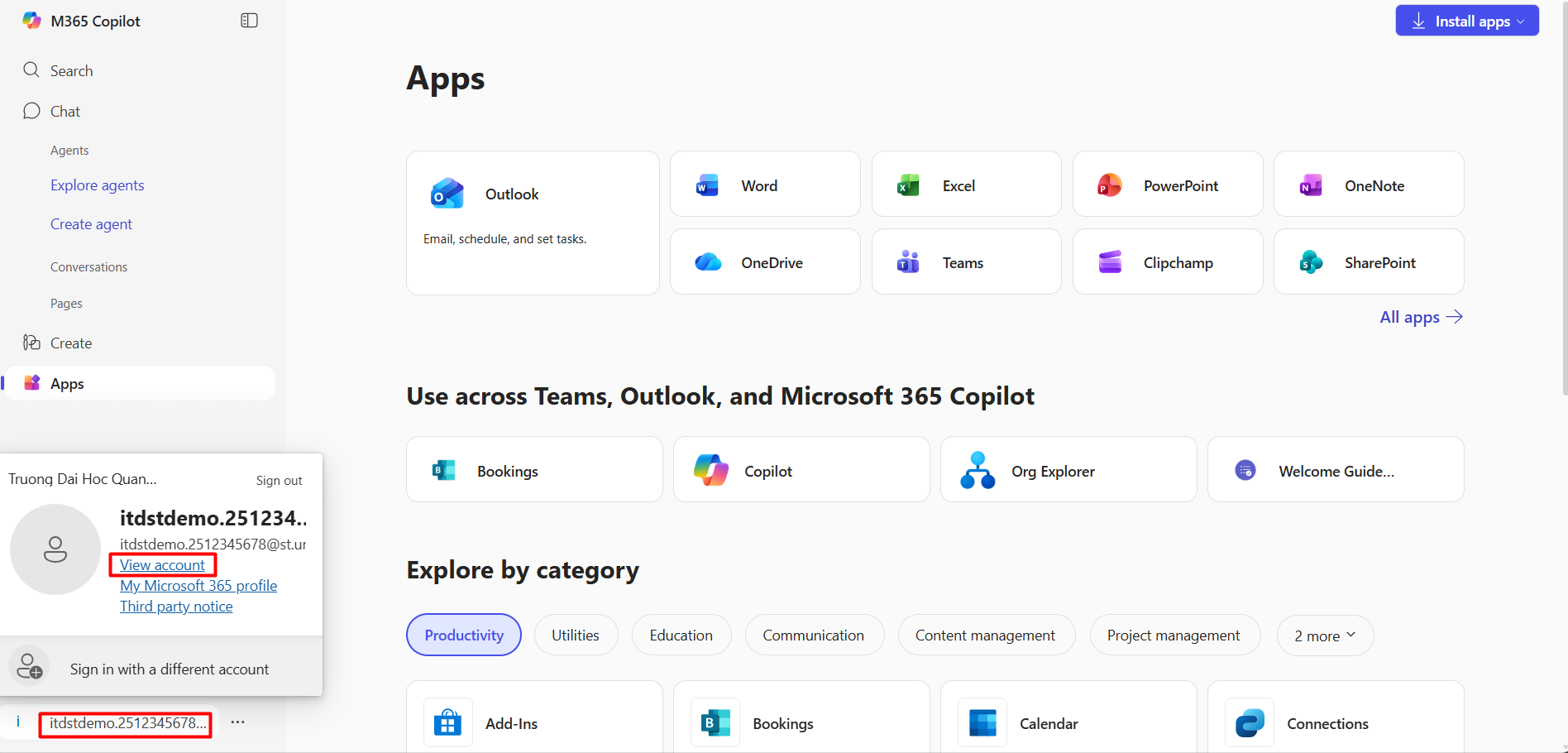 Bước 1: Để thay đổi mật khẩu hiện tại, chọn vào tài khoản --> chọn view account