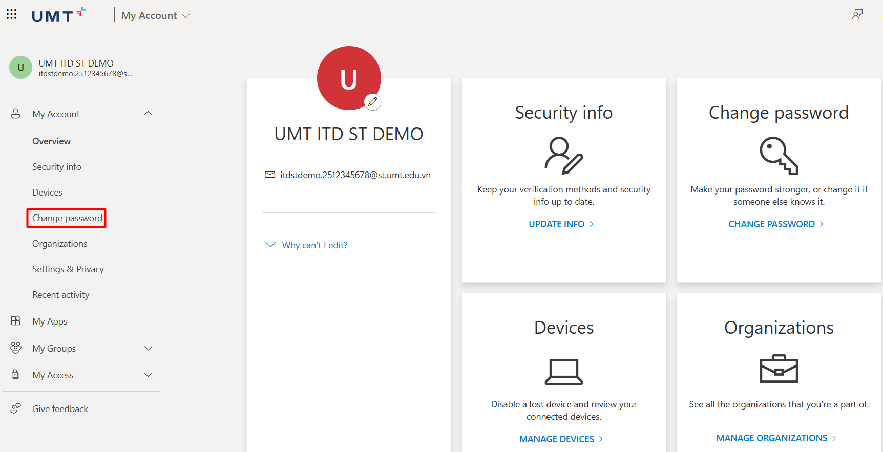 Bước 2: Chọn Change password để tiến hành đổi mật khẩu.